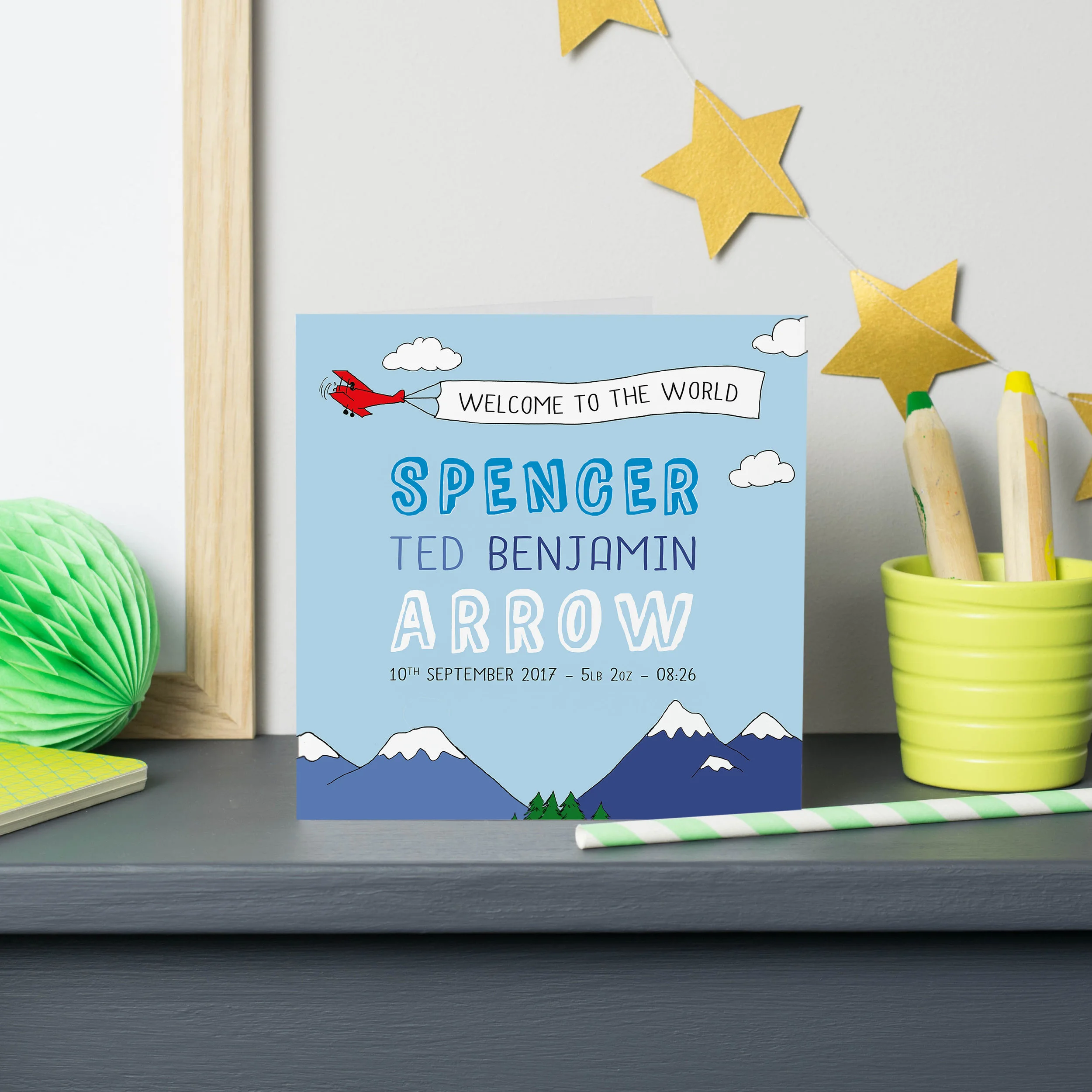 Custom Hand-lettered & illustrated Baby Name Wall Art with birth details