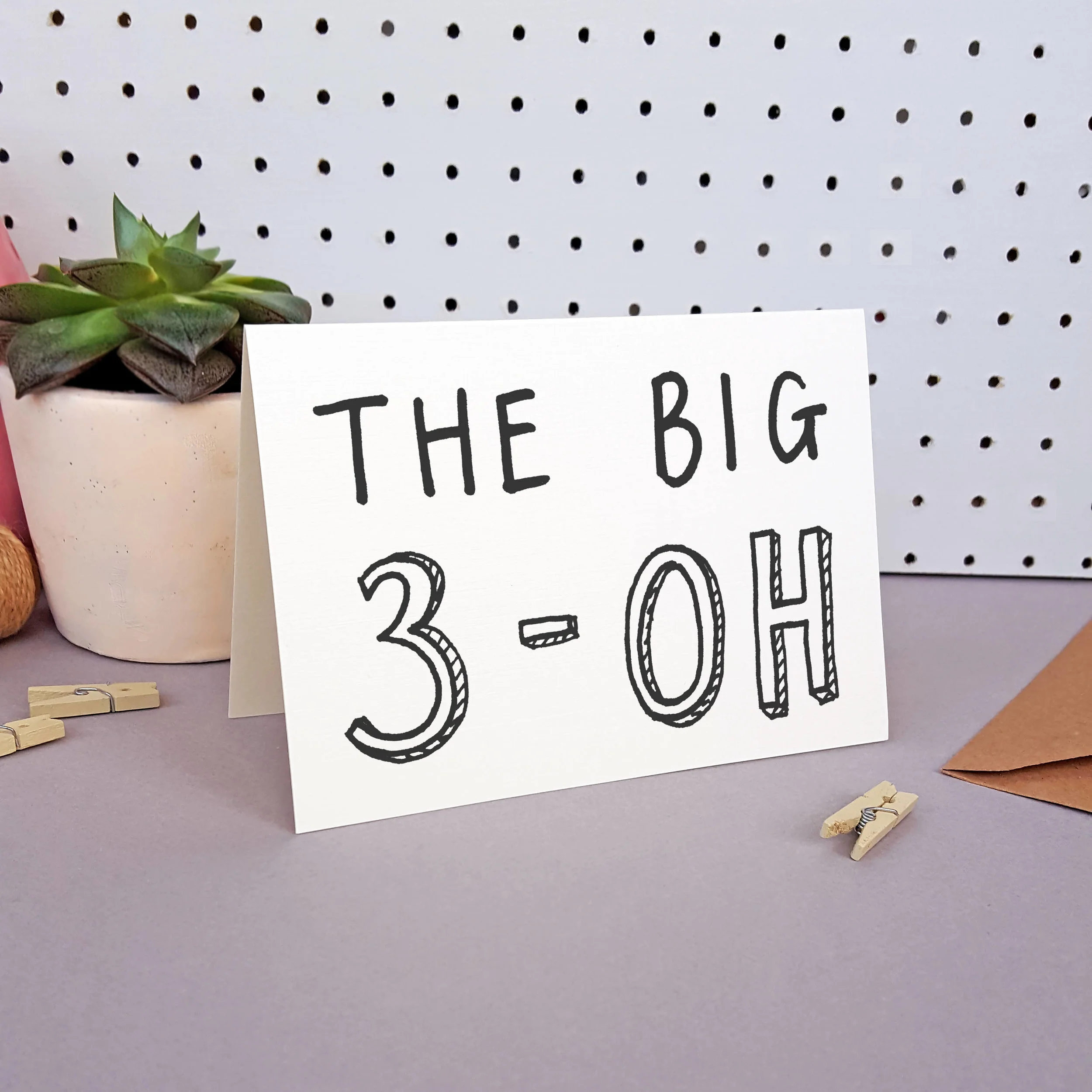 Hand-lettered 30th birthday card design printed onto 255gsm  ivory linen cardstock and kraft envelope.