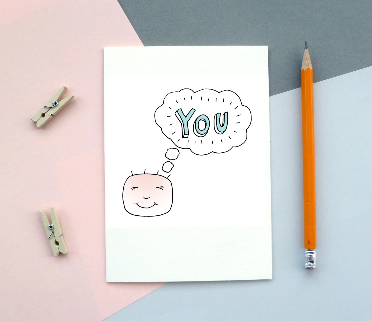 Cute and simple design perfect for those times when you want someone to know they are in your thoughts!